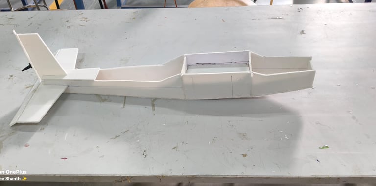 The objective of this project is to design and build a conventional single-motor RC aircraft to serve as a stable and efficient trainer model for testing aerodynamics, control systems, and structural design fundamentals. It also serves as a foundational platform for new members to gain practical exposure in aircraft fabrication and RC systems integration.